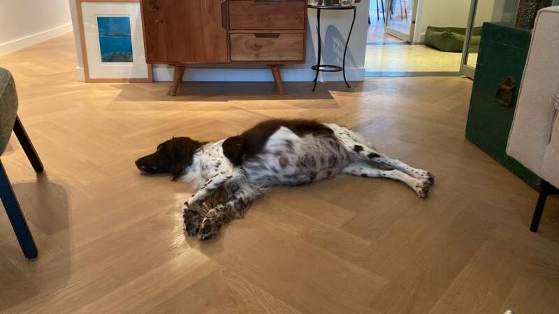 Na best een lange aanloopperiode is Guusje in de nacht van zaterdag op zondag 29/10 bevallen van 6 gezonde pups in een perfecte verdeling van 3 reutjes en 3 teefjes! Helaas hebben we wel wat pech gehad omdat er 1 pup dood geboren was en 1 pup na de geboorte helaas niet levensvatbaar was. Echt wel een teleurstelling maar het is de natuur, dit gebeurt helaas. Gelukkig gaat het met Guusje erg goed en zijn we super blij met de 6 pups die al goed drinken en dus groeien. Afgelopen zondag gelijk de toekomstige baasjes geïnformeerd en zelf besloten dat we een reutje houden! Na lang wikken en wegen hebben we hier toe besloten omdat we hopen, en ook wel een beetje weten, dat een reutje wat stabieler is in het jachtwerk en de loopsheid toch best een impact kan hebben op een teef. We zullen het zien.... Komende dagen houden wij ons bezig met het voeden van Guusje (veel!) het wegen van de pups, het geven van "werk" namen aan de pups en natuurlijk het genieten van de pups, wat een wonder is het toch!